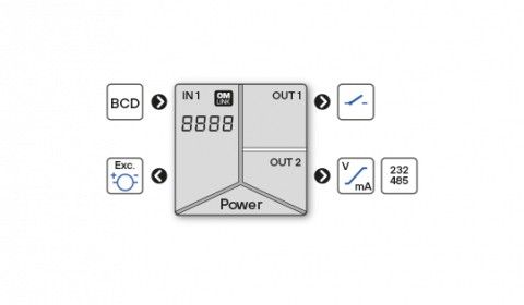 2x relay, switch-over contact (250 VAC/30 VDC, 3 A)